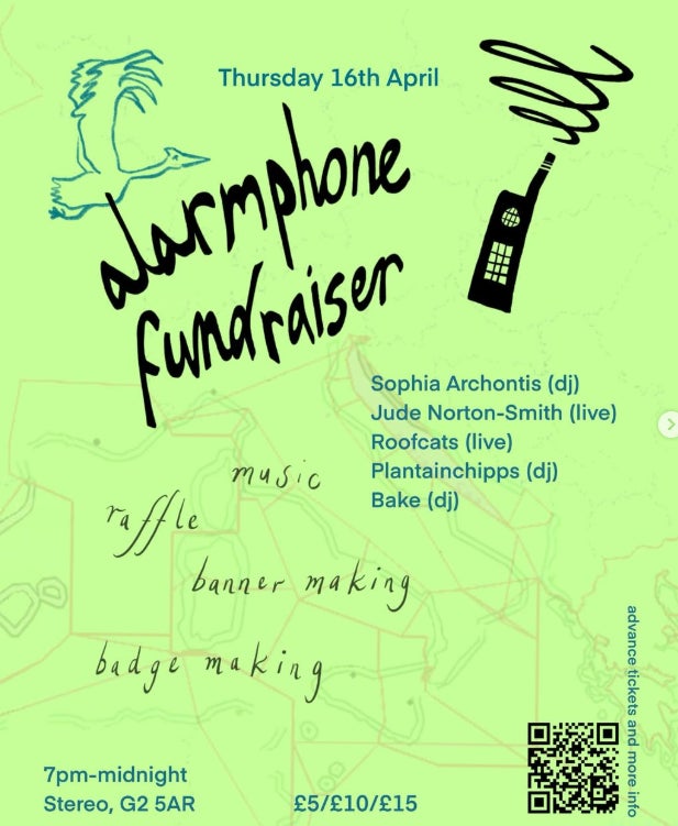 DJs! live music! craft table! raffle! raising money for Alarmphone's Glasgow team.